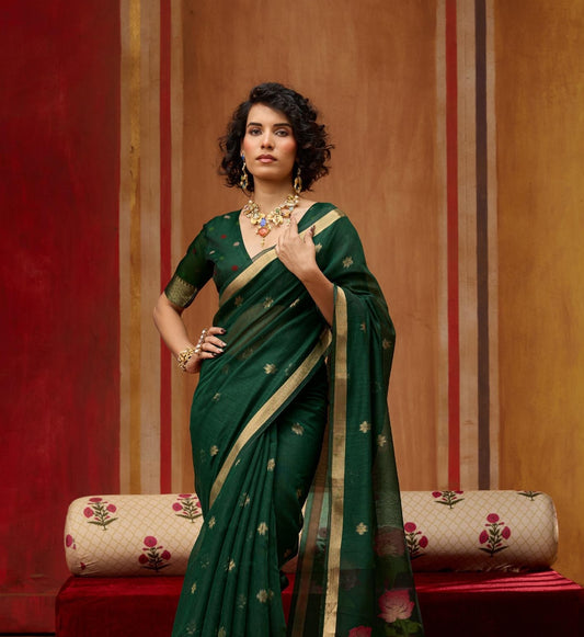 Dark Green Cotton Readymade/Easy Saree
