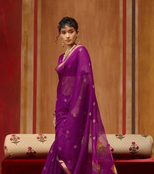 Royal Purple Cotton Readymade/Easy Saree