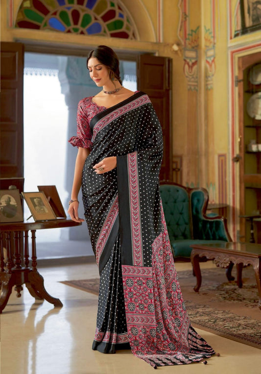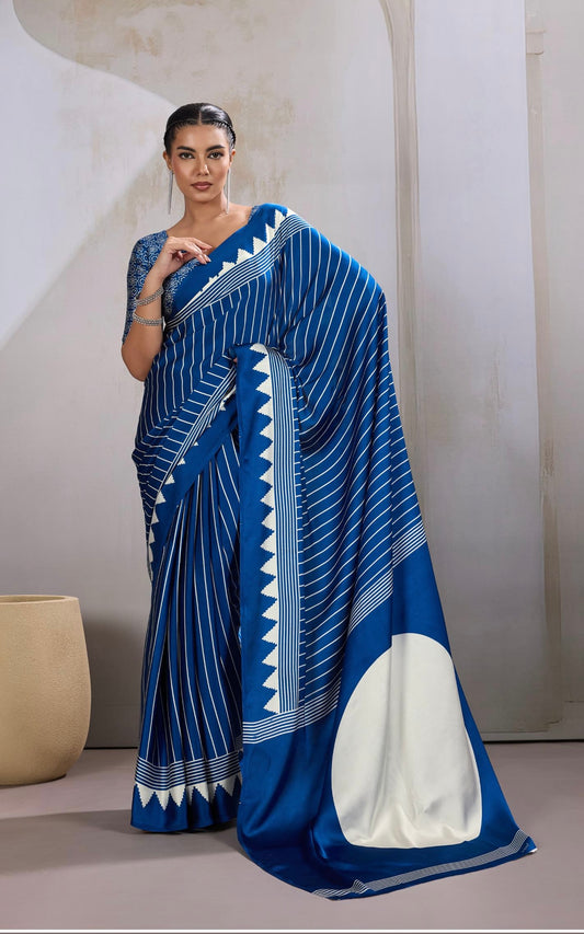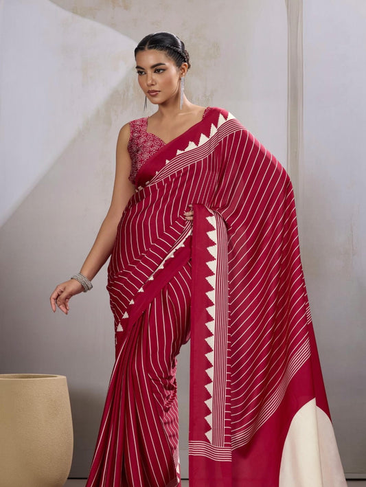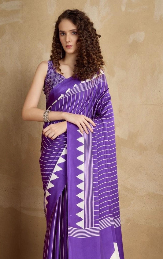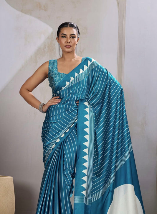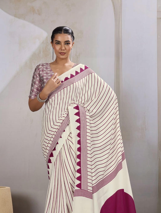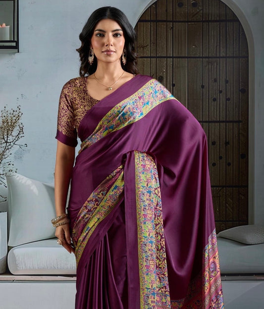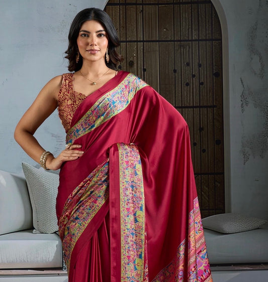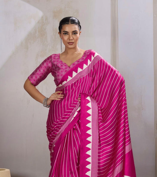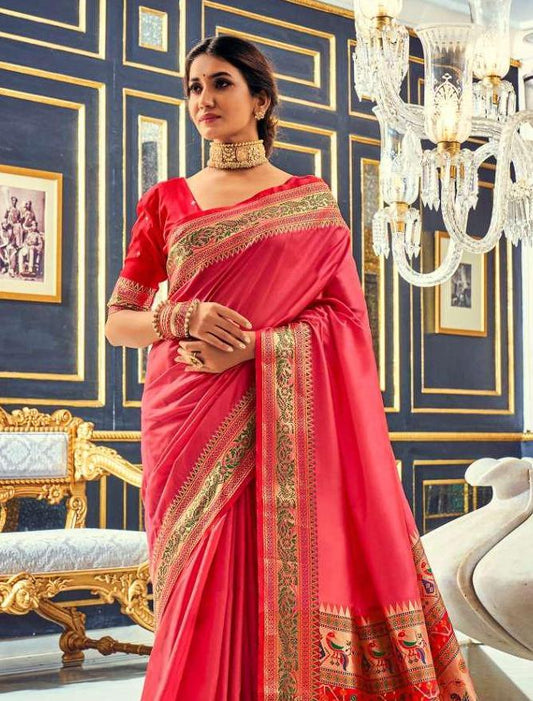 Plain Pink Silk Readymade/Easy Saree With Paithani Border