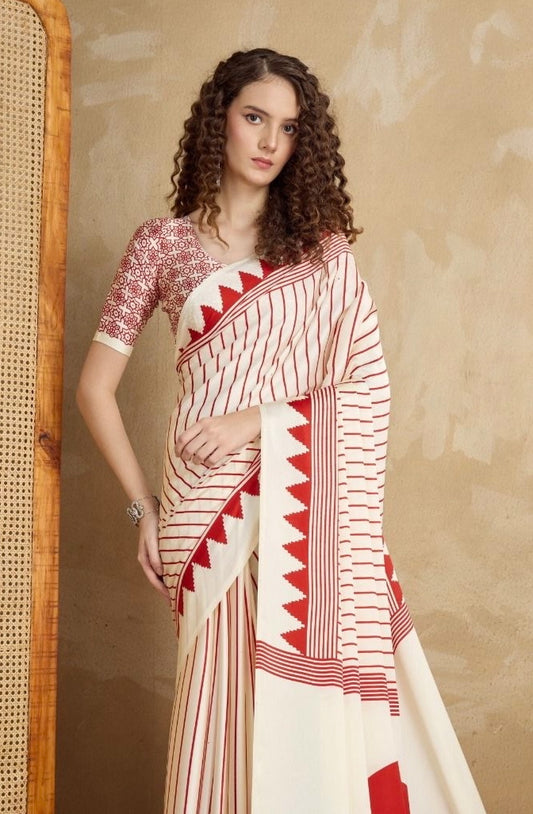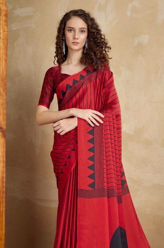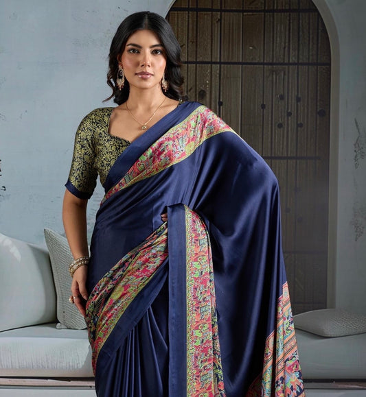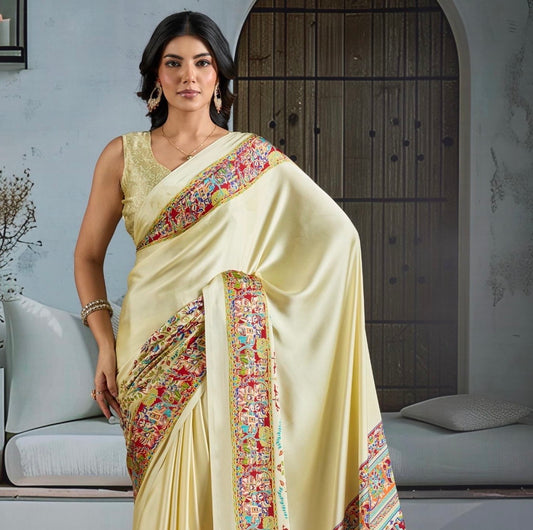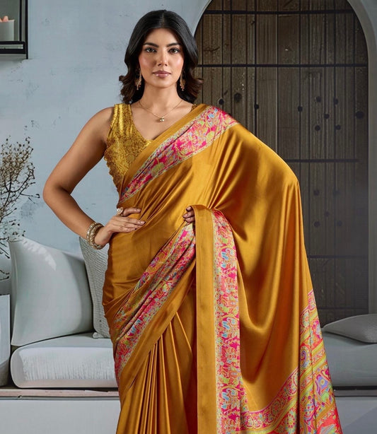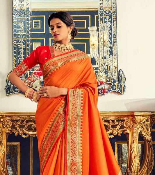 Plain Orange Silk Readymade/Easy Saree With Paithani Border
