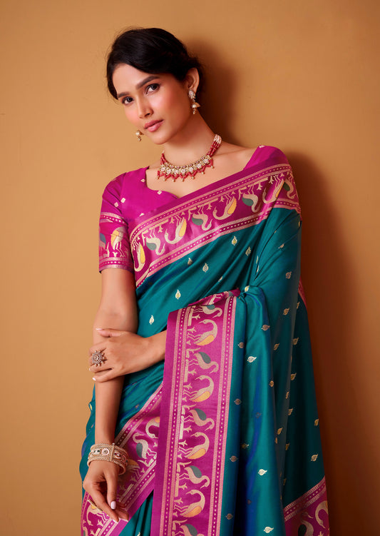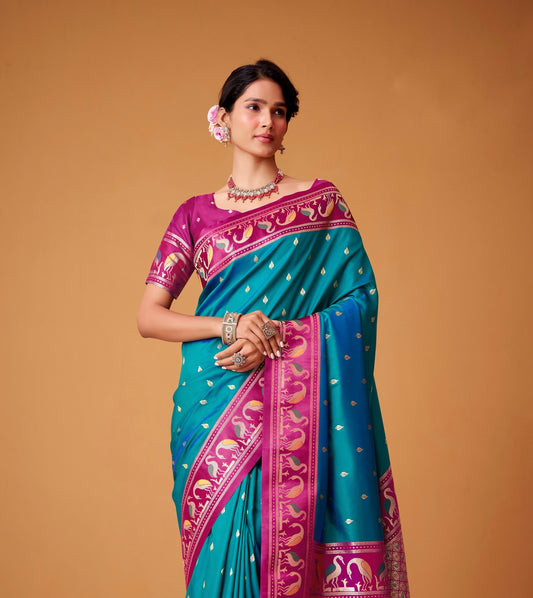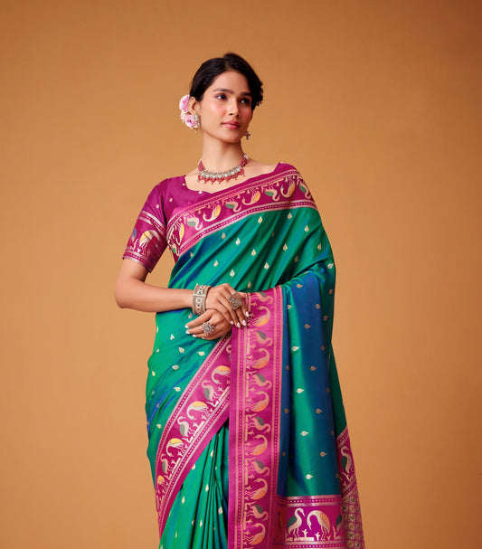 Teal Green Soft Silk Kanjivaram Readymade/Easy Saree