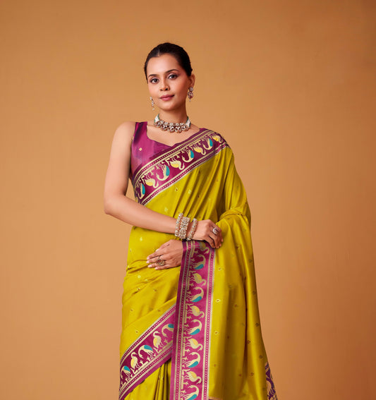 Mustard Yellow Soft Silk Kanjivaram Readymade/Easy Saree