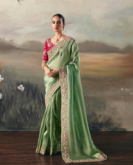 Emerald Green Embroidery Silk Readymade/Easy Saree