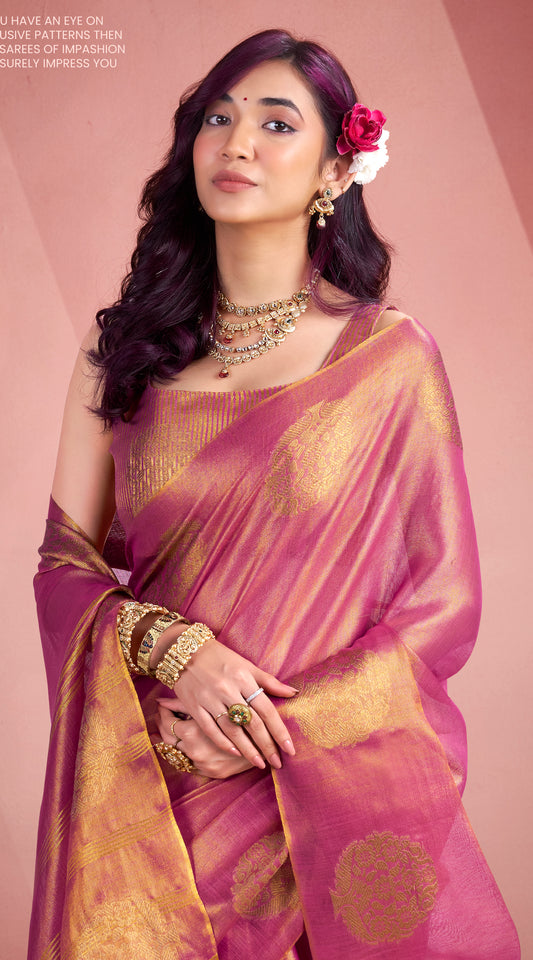 Pink Tissue Silk Readymade/Easy Saree