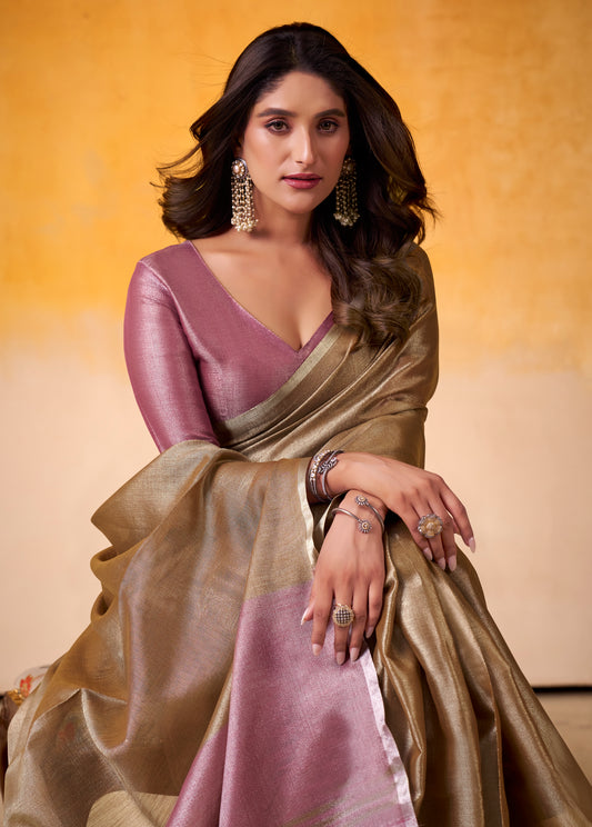 Bronze Color Tissue Silk Readymade/Easy Saree