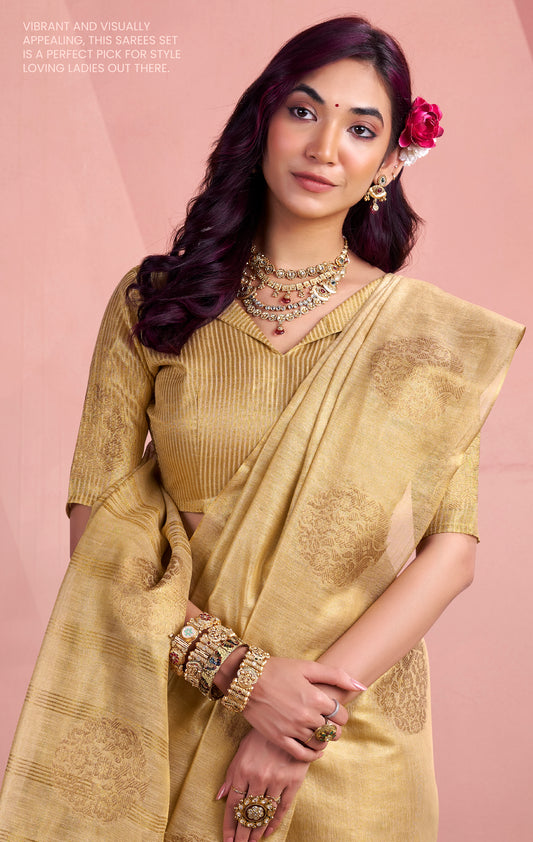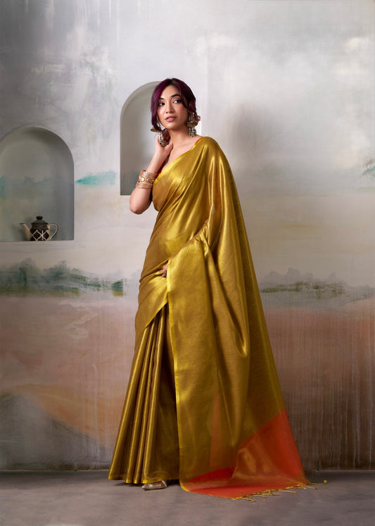 Plain Golden Tissue Silk Readymade/Easy Saree