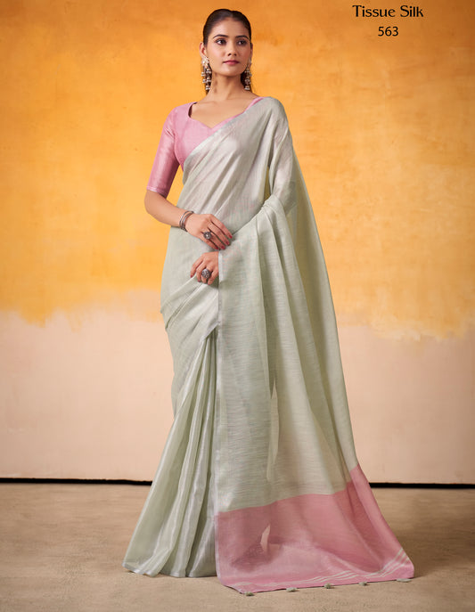 Pastel Green Tissue Silk Readymade/Easy Saree