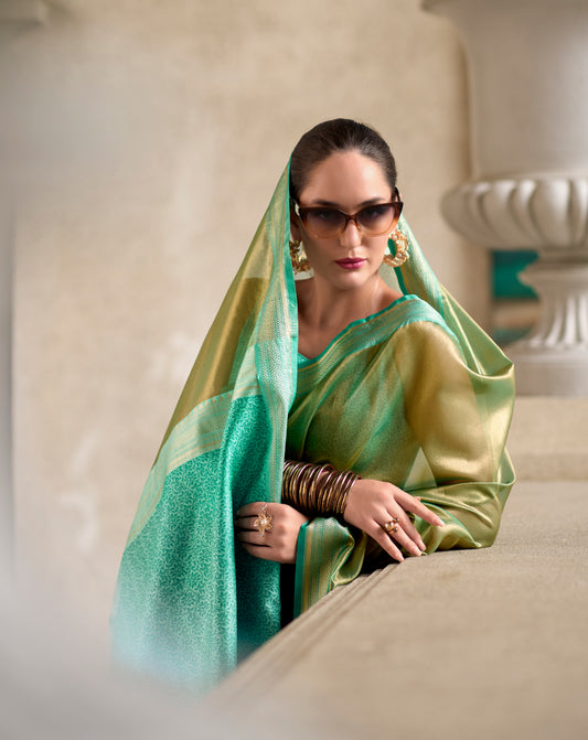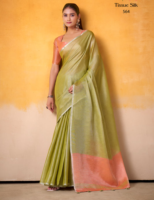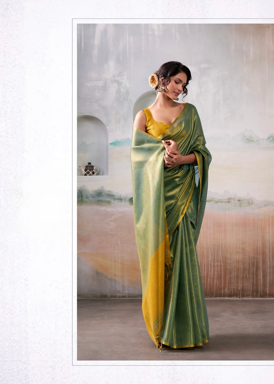 Green Tissue Silk Readymade/Easy Fancy Saree