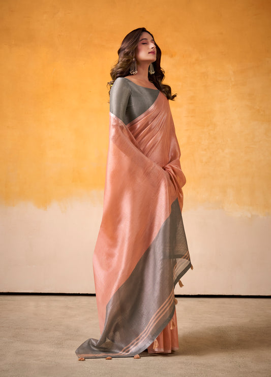 Peach Tissue Silk Readymade/Easy Saree