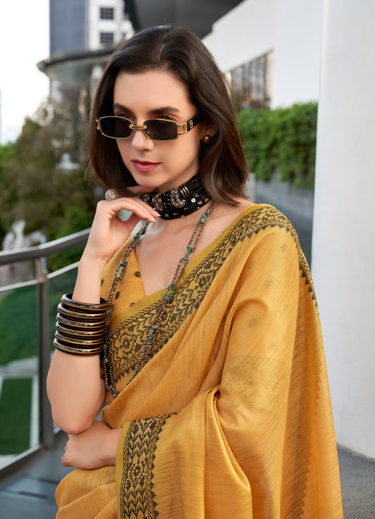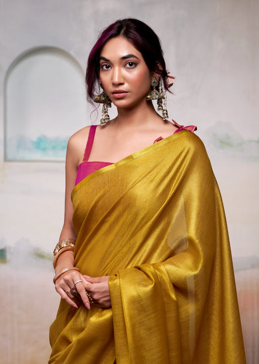 Mustard Linen Tissue Readymade/Easy Saree