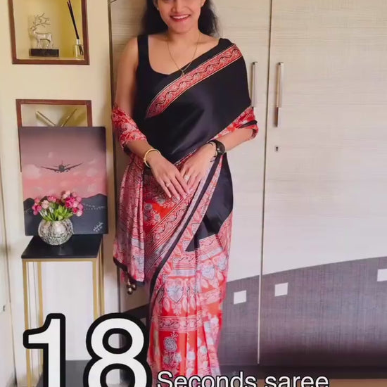 Black & Orange Crepe Silk Readymade/Easy Saree