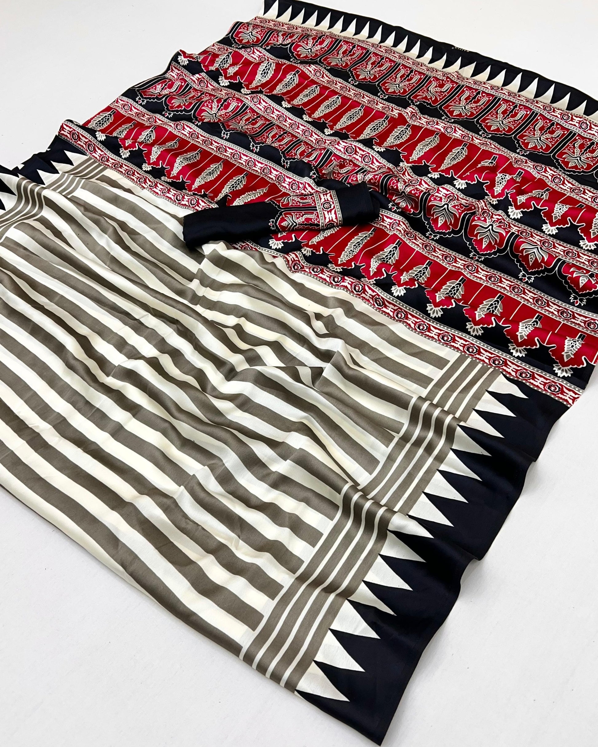 Black Stripe Crepe Silk Readymade/Easy Saree