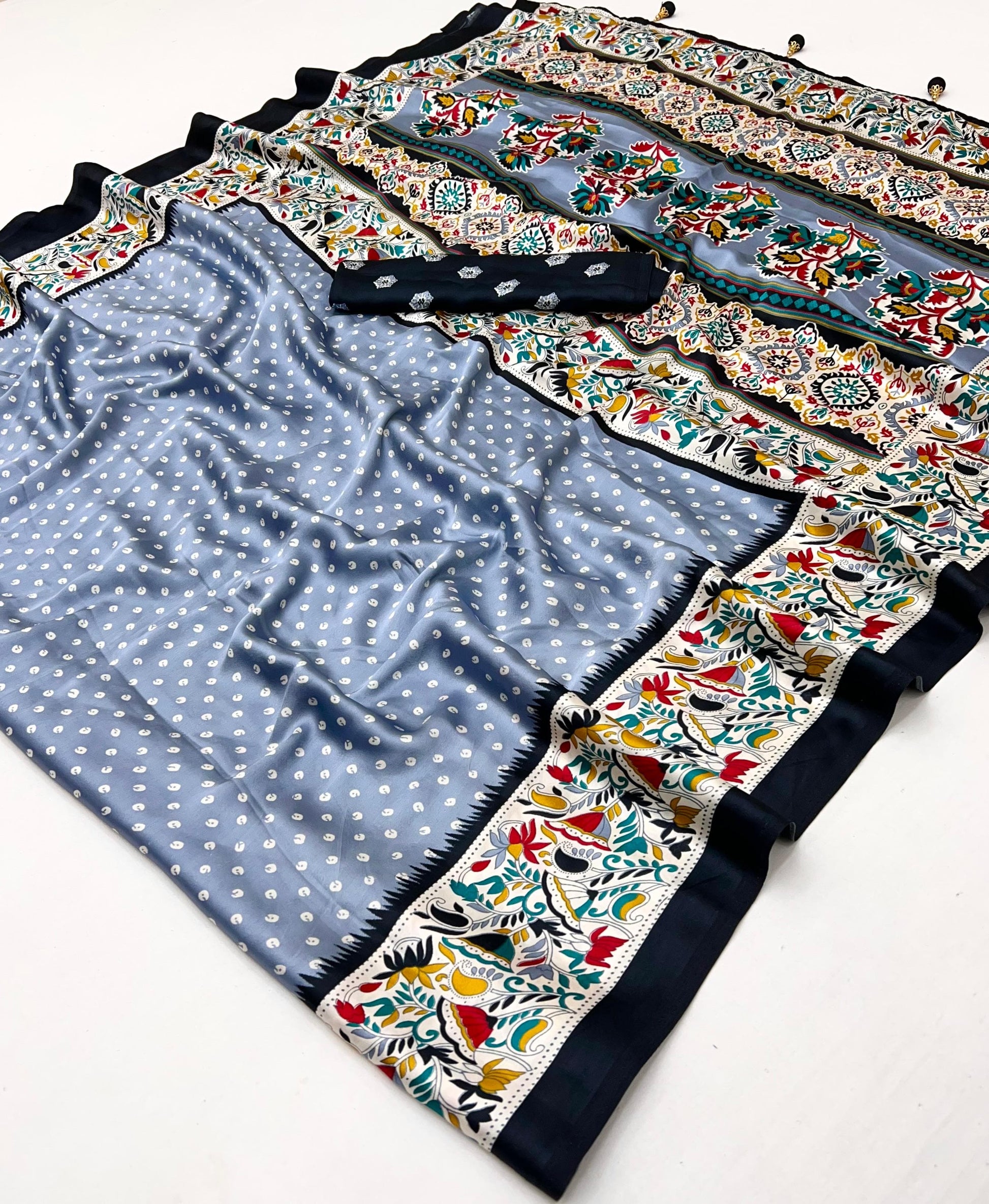 Designed for comfort and style, our custom-made sarees feature pre-pleated pleats and a skirt-like drape, letting you wear them effortlessly in just 18 seconds. Each saree comes with an attached petticoat for complete convenience.