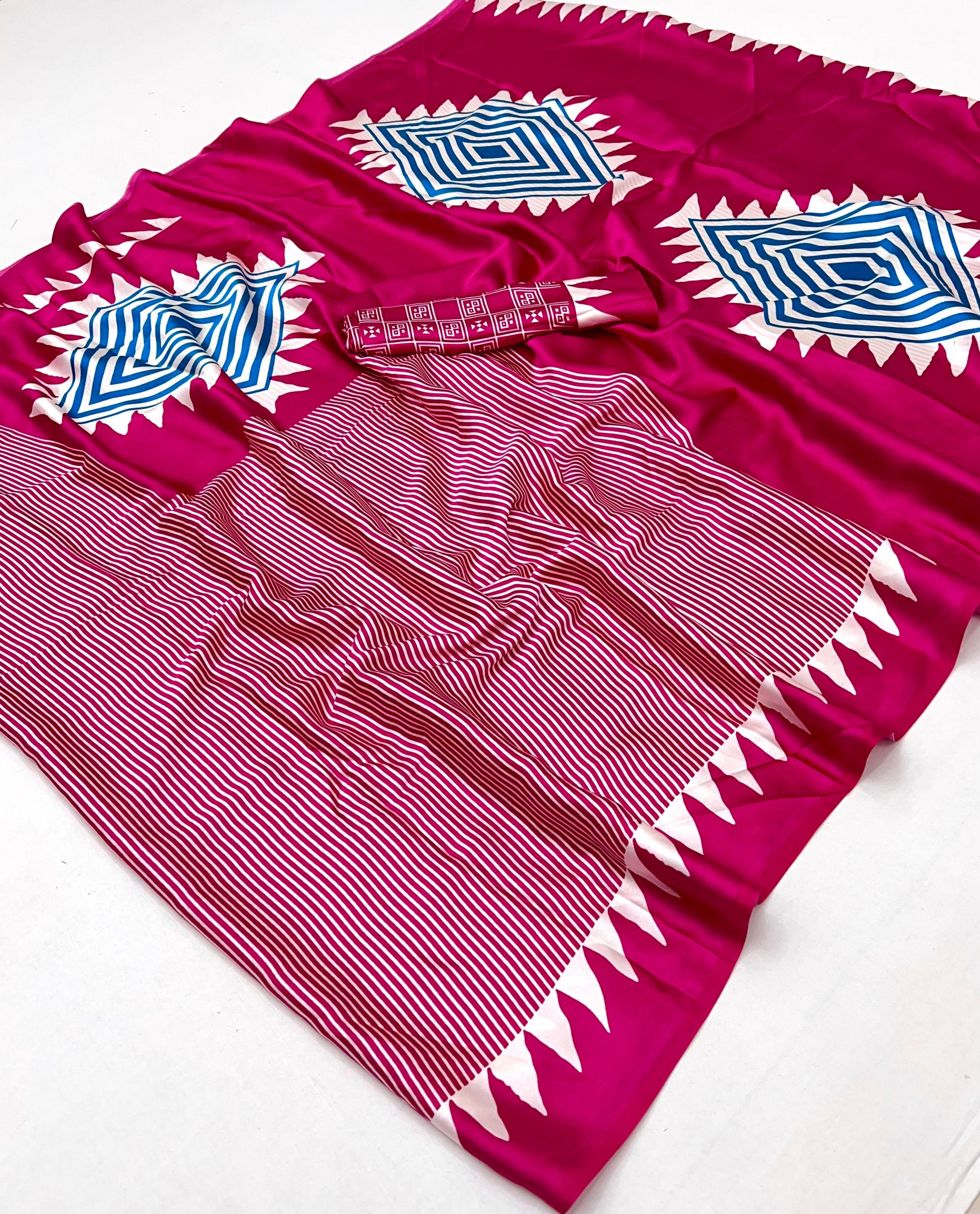 Fuchsia Crepe Silk Readymade/Easy Saree