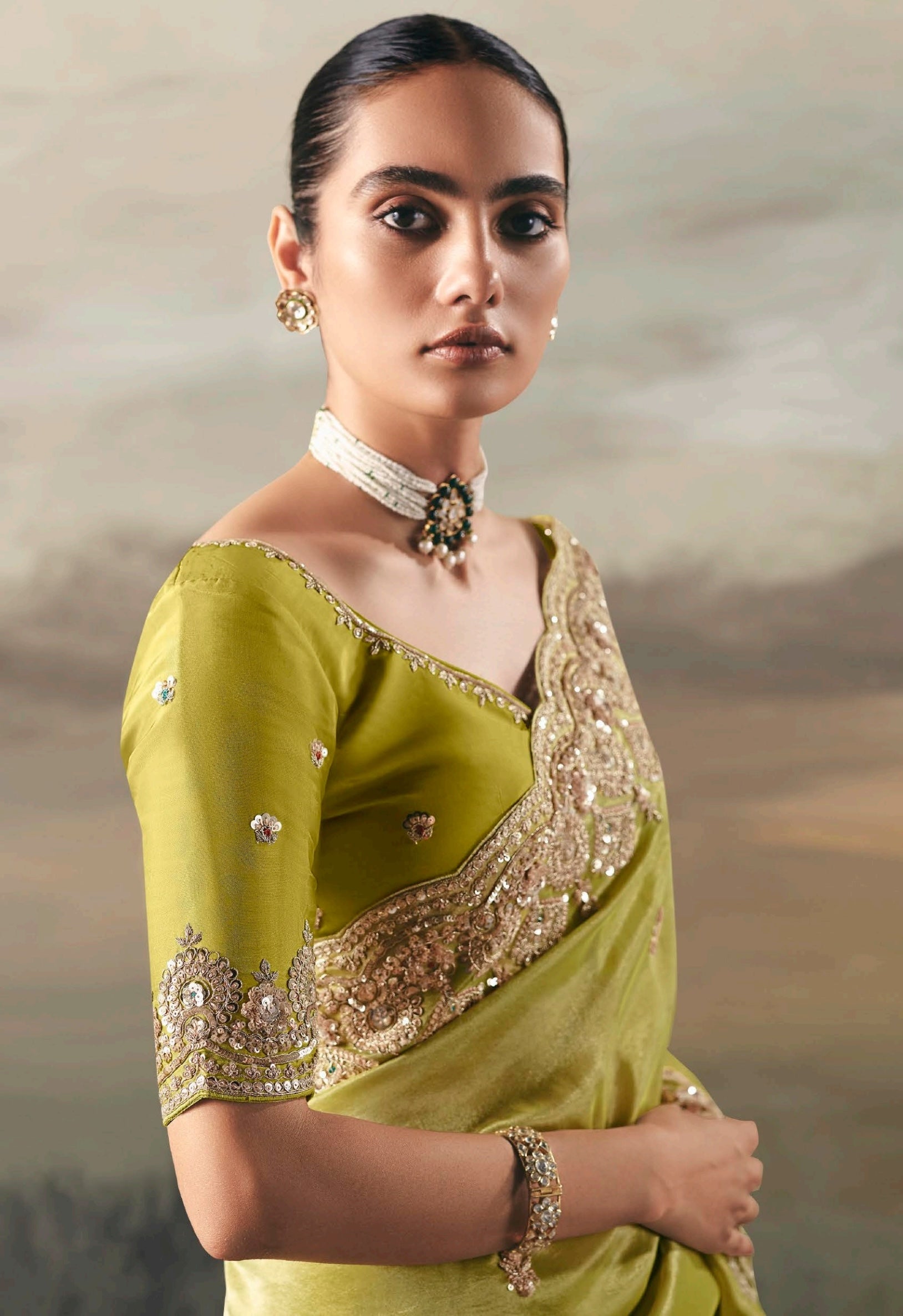 TheĀ unstitched blouse piece allows you to personalize your look, with stitching services available at an additional cost. For waist sizes above 44 inches, the blouse piece is excluded to allow extra pleatsāensuring the perfect drape and fit.