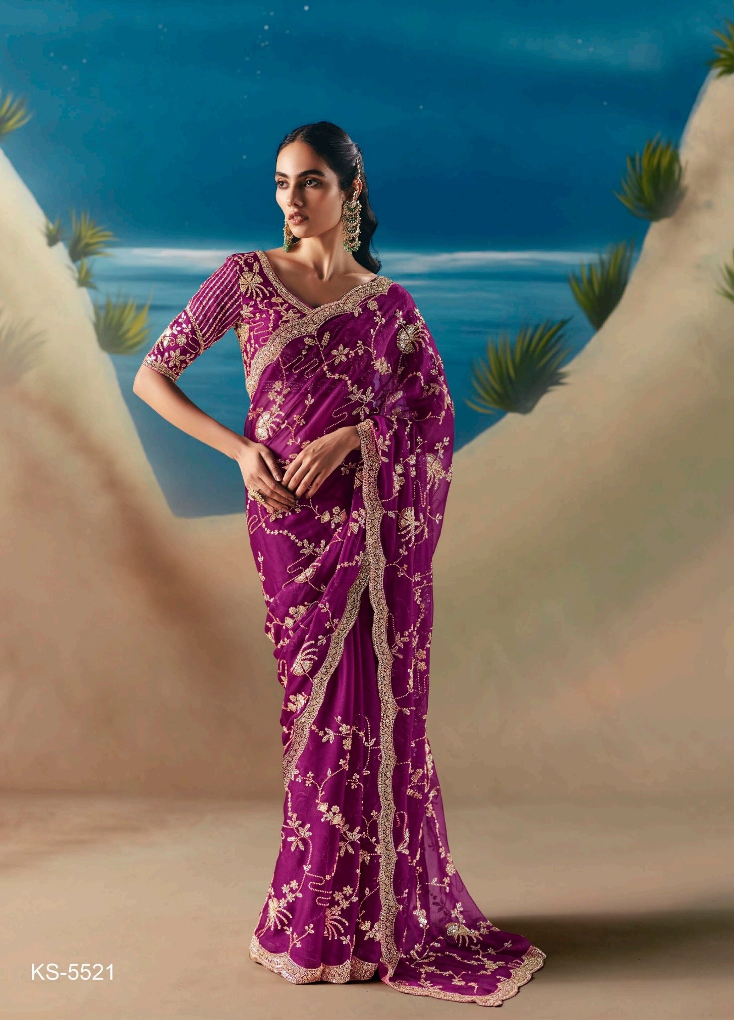 The unstitched pallu adds versatility, so you can style it open or pleated as you desire.