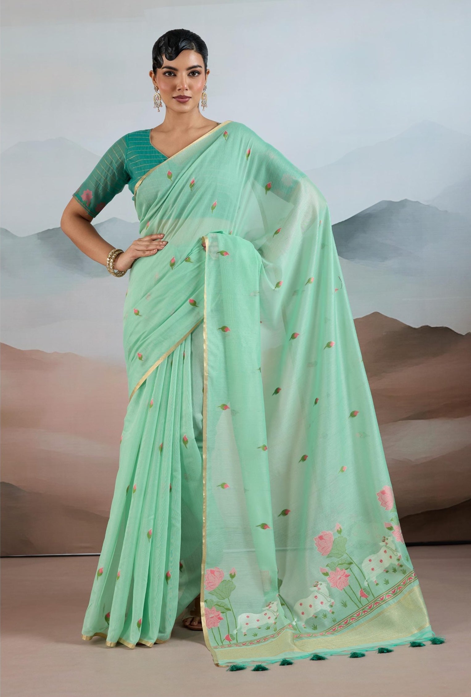 The unstitched pallu adds versatility, so you can style it open or pleated as you desire.