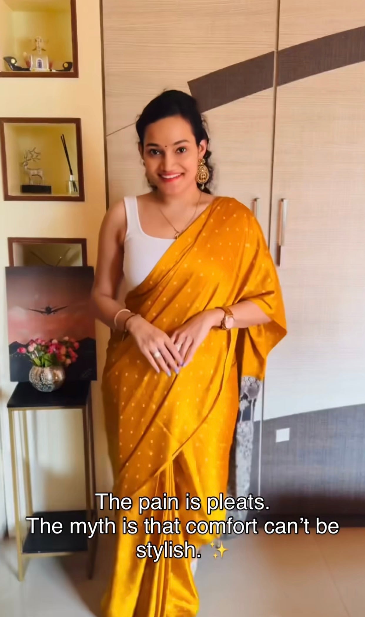 Designed for comfort and style, our custom-made sarees feature pre-pleated pleats and a skirt-like drape, letting you wear them effortlessly in just 18 seconds. Each saree comes with an attached petticoat for complete convenience.