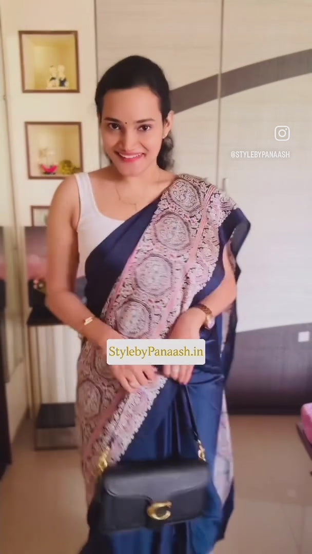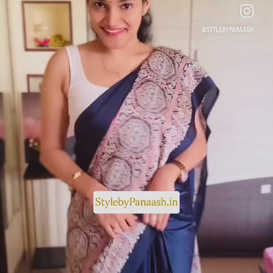 Navy Blue Crepe Silk Readymade Saree