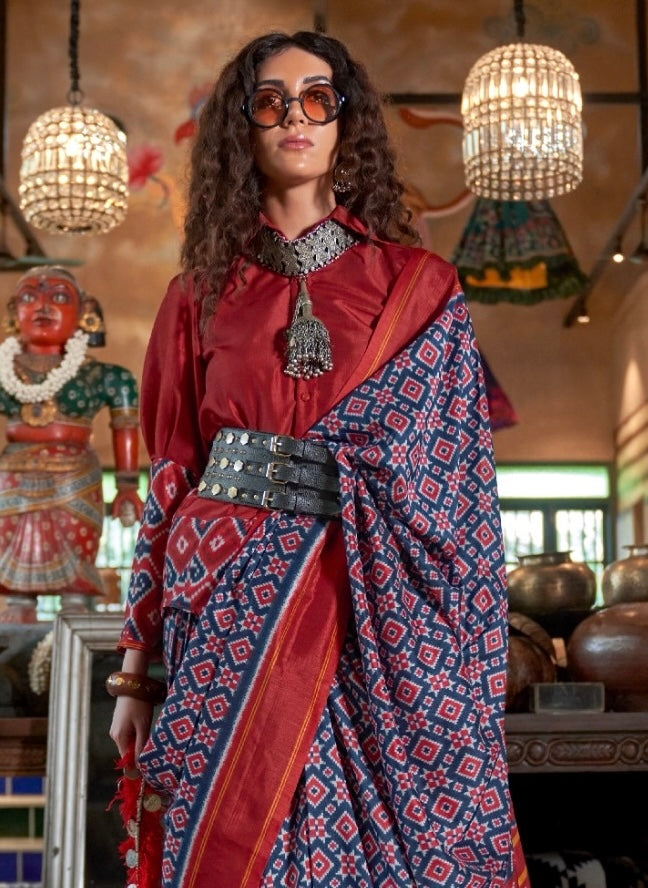 Navy blue Patola Silk Readymade/Easy Saree