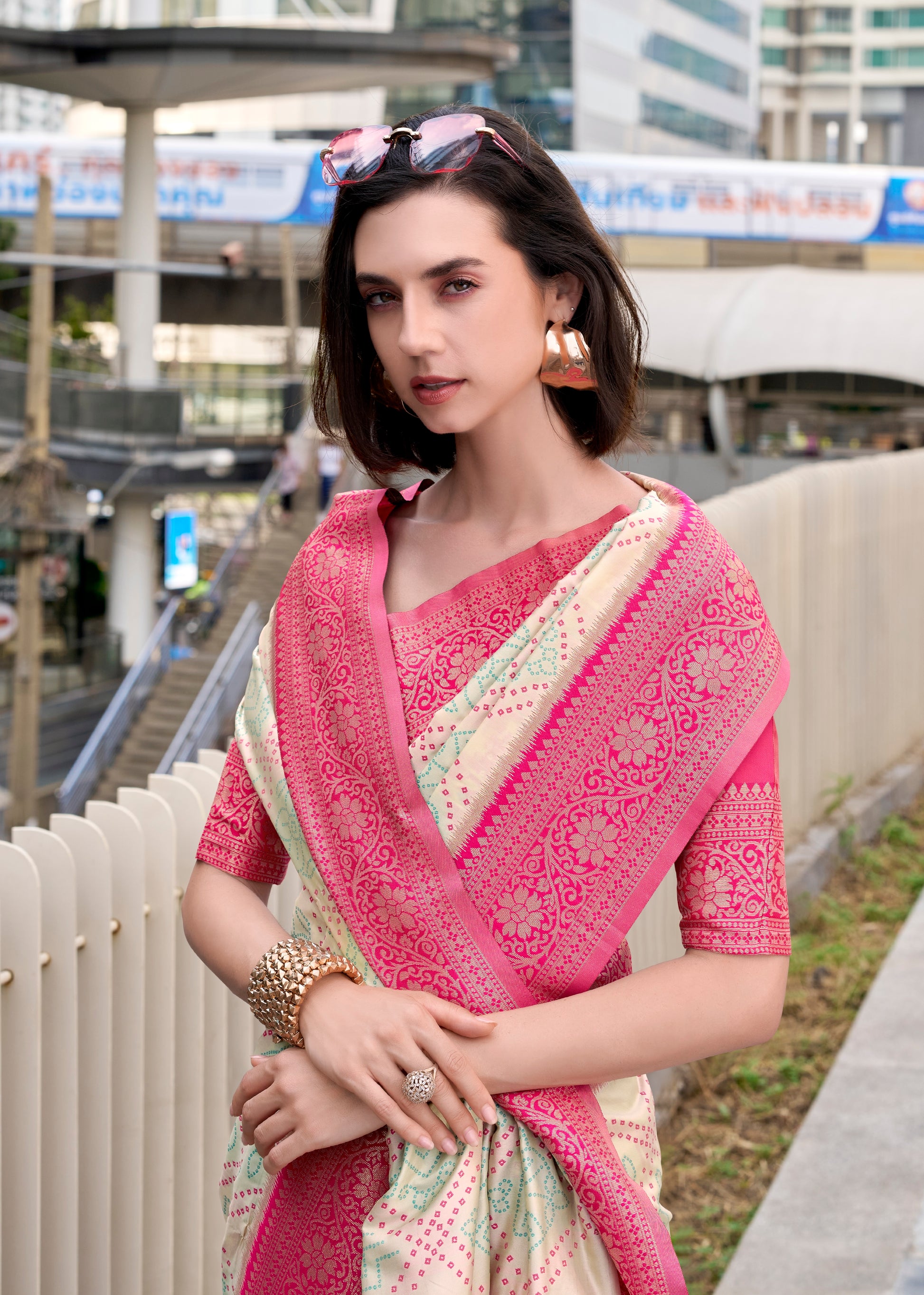 Off White Kanjivaram Silk Readymade/Easy Saree