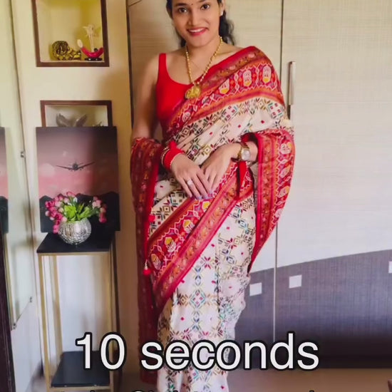 Off-White Patola Silk Readymade/Easy Saree