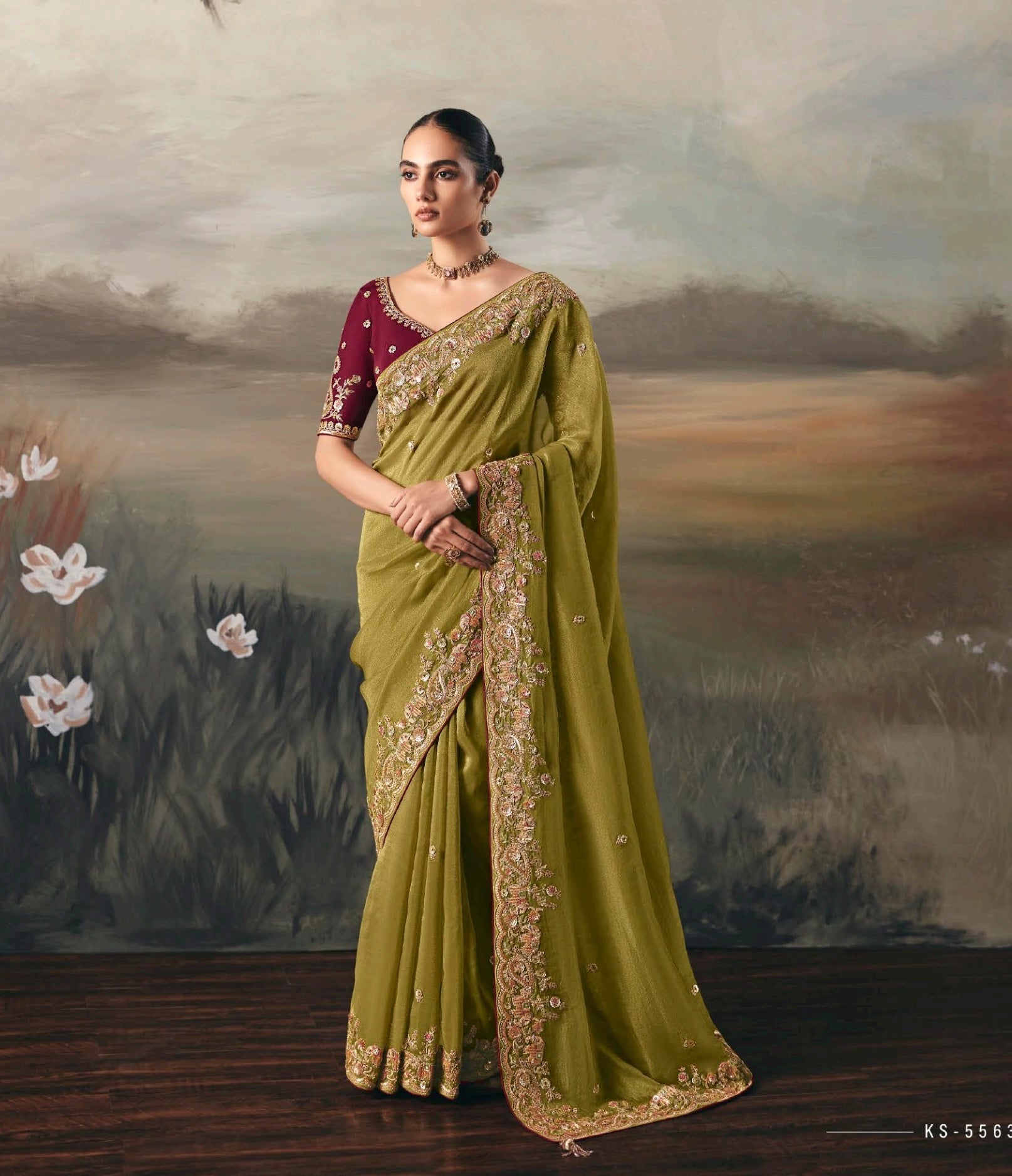 TheĀ unstitched pallu adds versatility, so you can style it open or pleated as you desire.