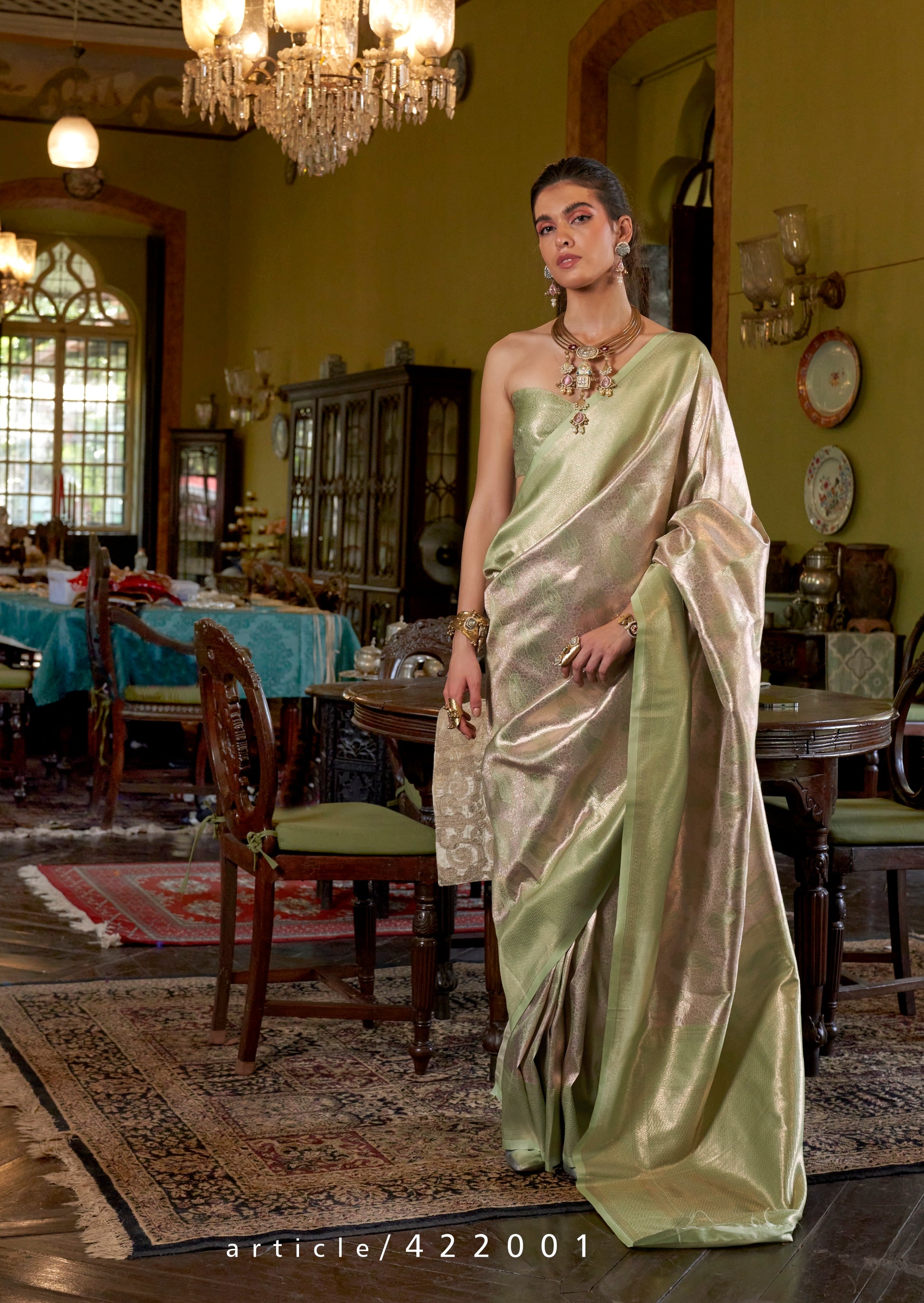 Pastel Green Kanjivaram Silk Readymade/Easy Saree