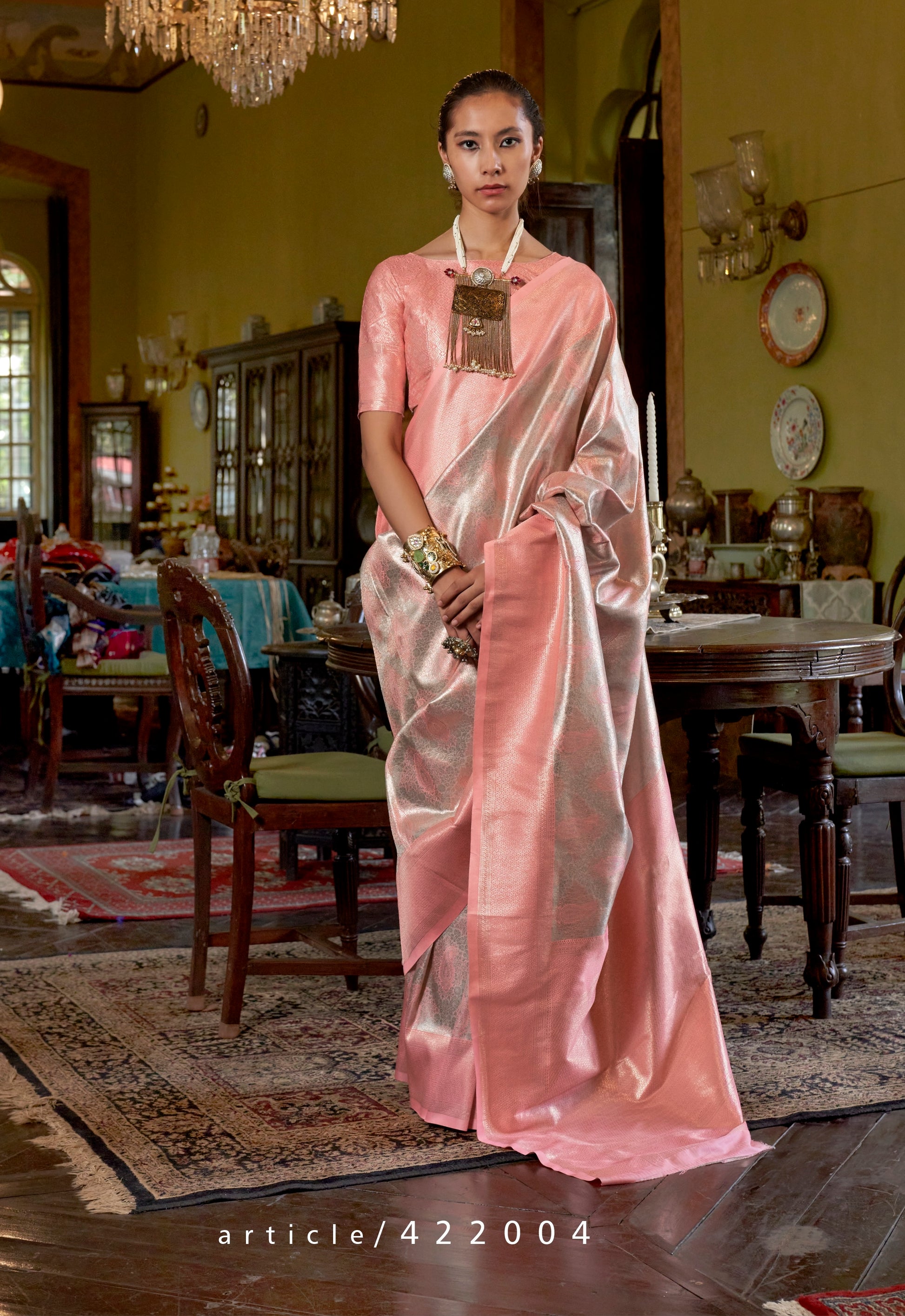 Peach Kanjivaram Silk Readymade/Easy Saree