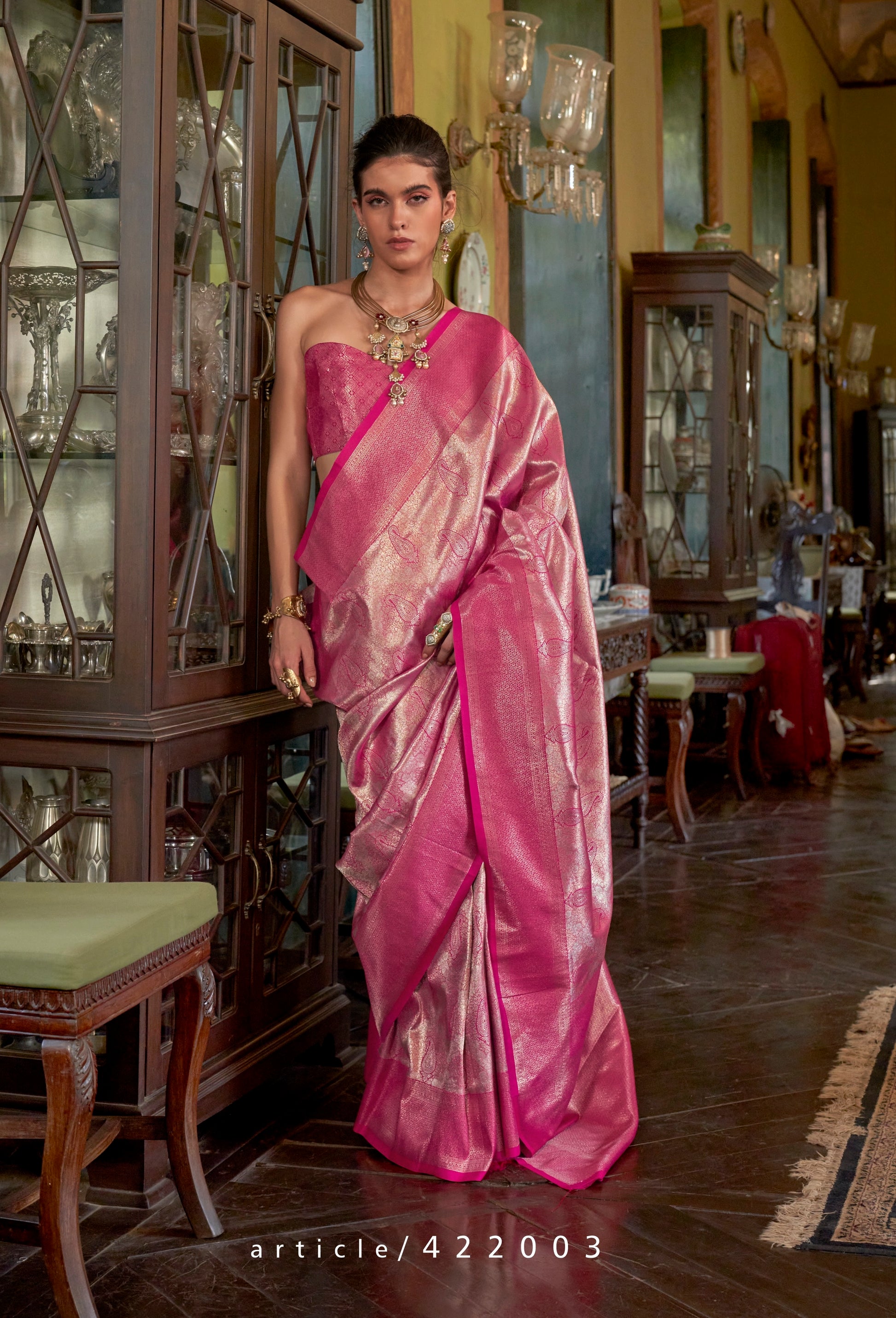Pink Kanjivaram Silk Readymade/Easy Saree