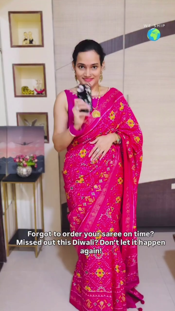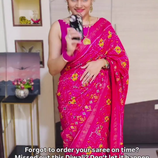 Pink Patola Silk Readymade/Easy Saree