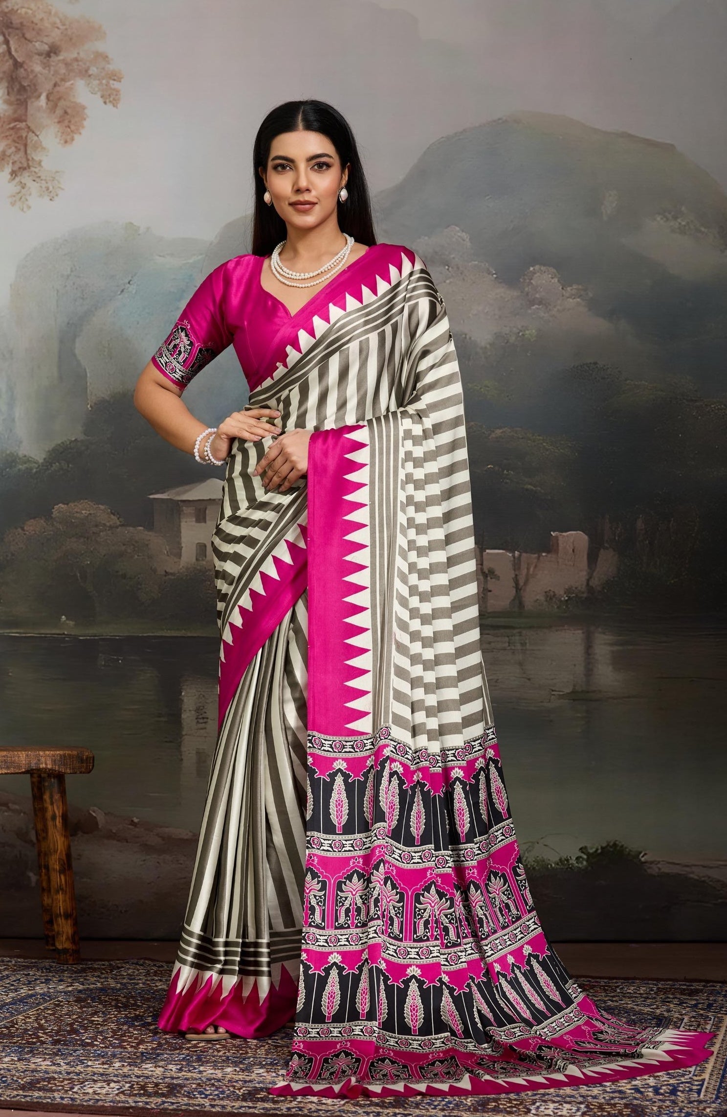 Pink Stripe Crepe Silk Readymade/Easy Saree