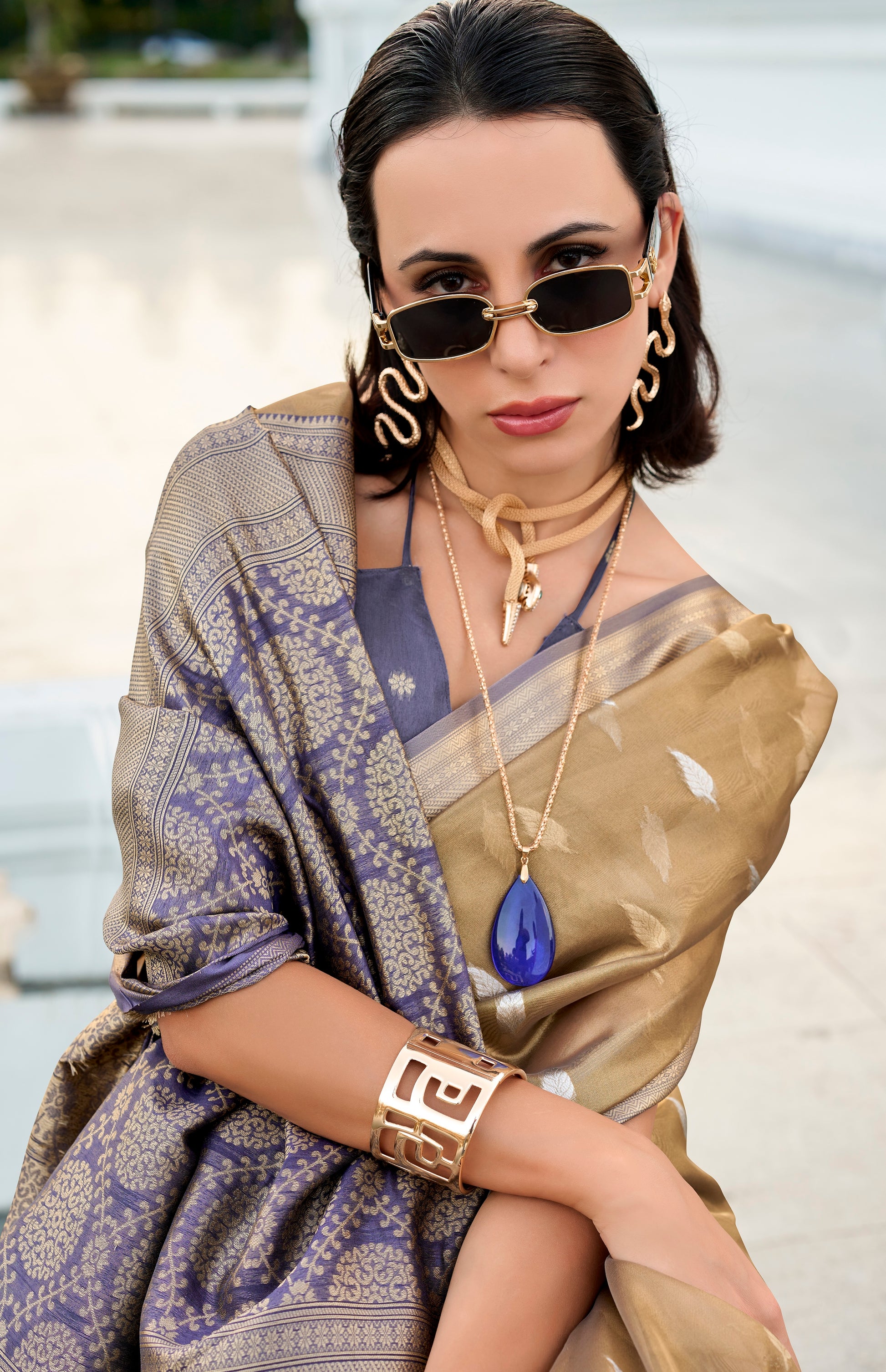 Powder Blue Tissue Silk Readymade/Easy Fancy Saree