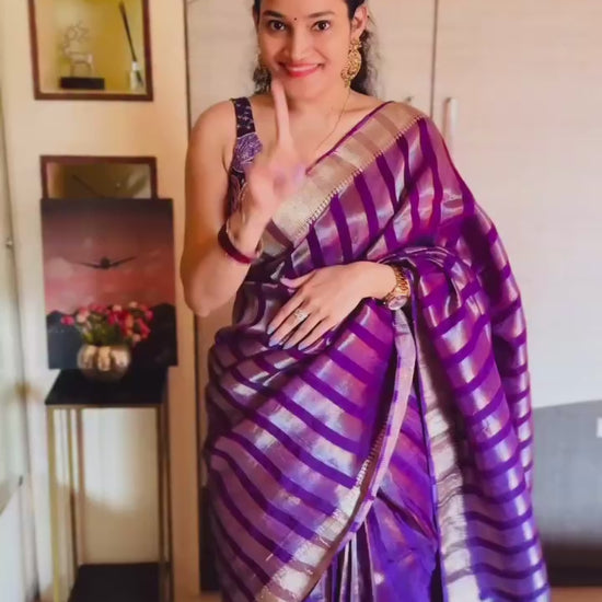 Purple Color Banarasi Silk Readymade/Easy Saree
