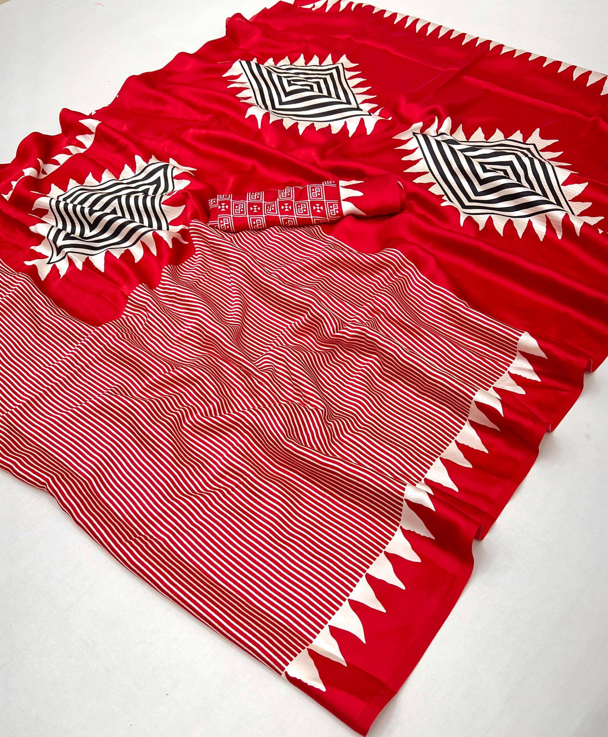 Red Crepe Silk Readymade/Easy Saree