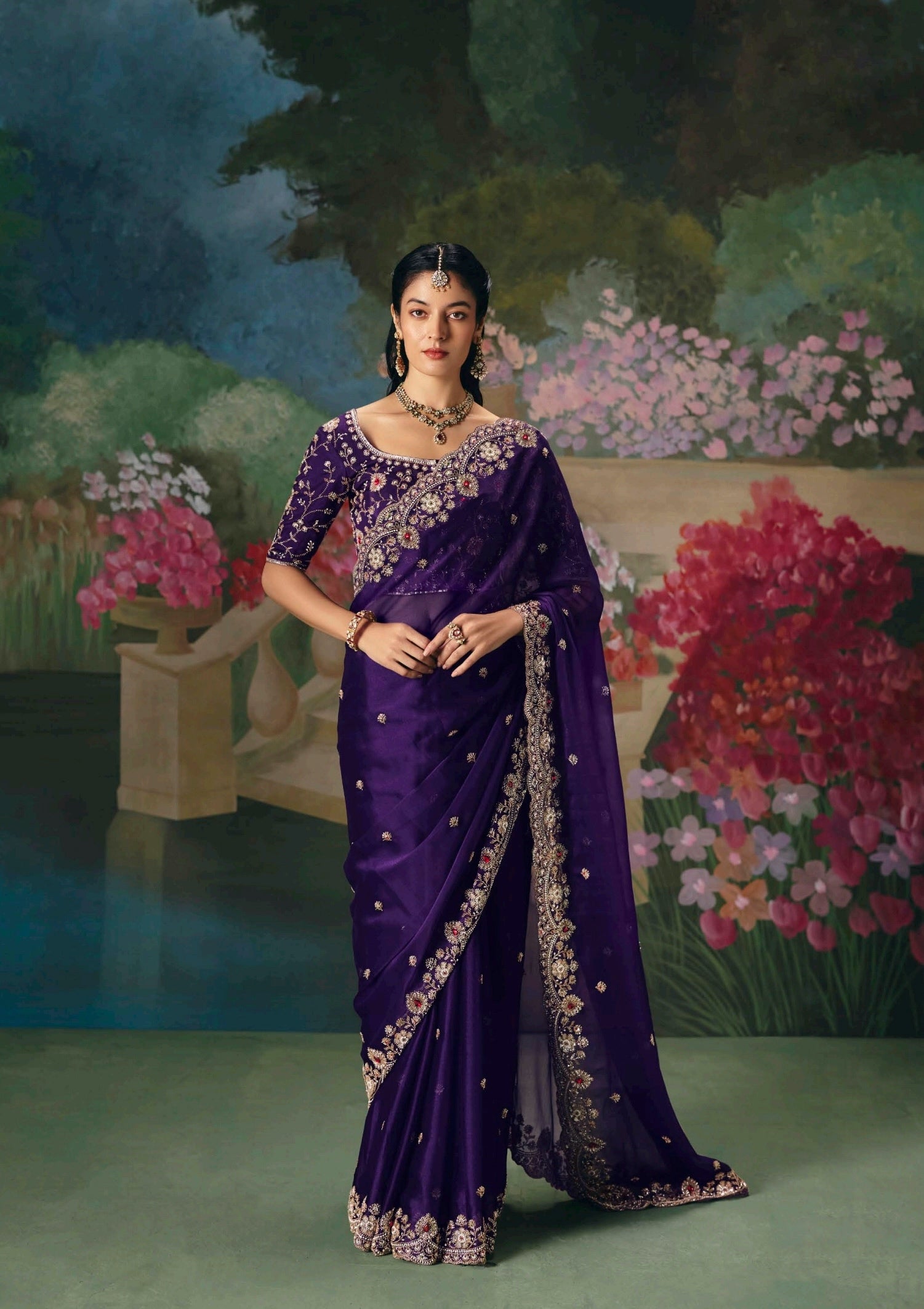 TheĀ unstitched pallu adds versatility, so you can style it open or pleated as you desire.