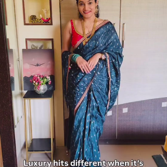 Designed for comfort and style, our custom-made sarees feature pre-pleated pleats and a skirt-like drape, letting you wear them effortlessly in just 18 seconds. Each saree comes with an attached petticoat for complete convenience.